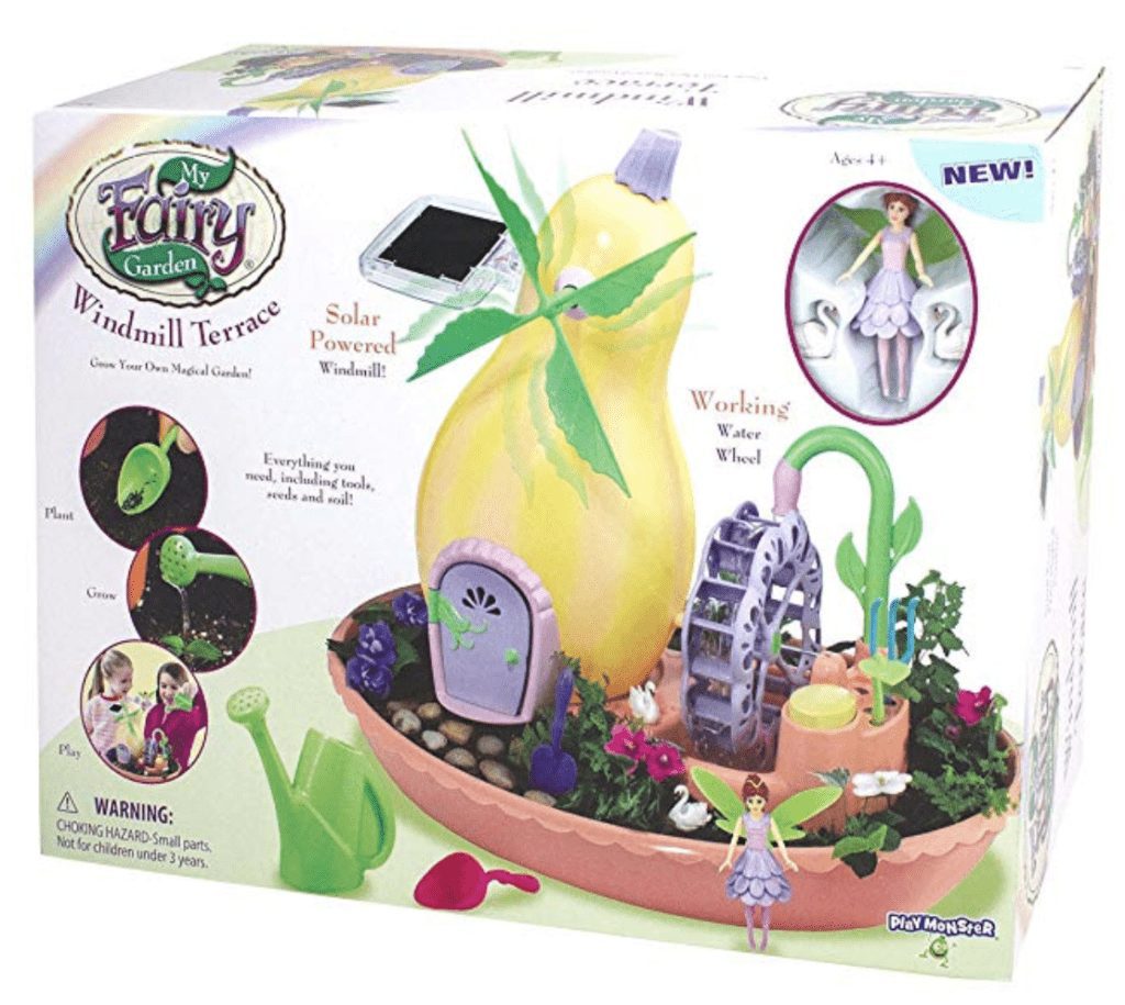 The set contains pea seeds to grow pea shoots, a fairy figure, a small house, and a picket fence. All you need to do is add some soil and follow the instructions of planting the pea seeds. The aim of the toy s to present to your kid the basic ideas of gardening but also to teach them to be patient and the importance of sticking to their duties.