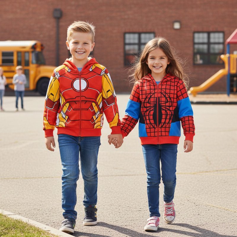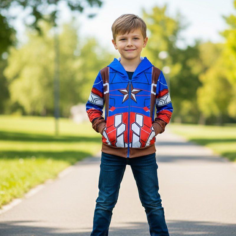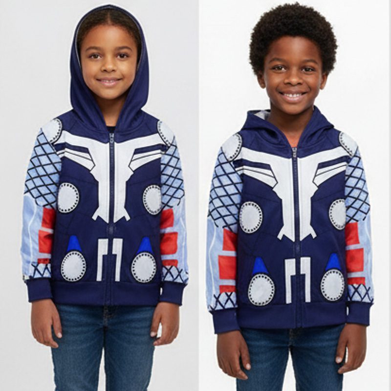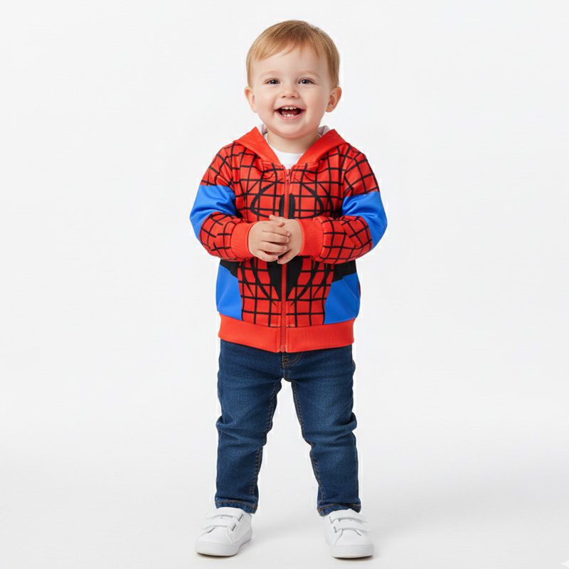 Bought this for my 5 year old grandson and he LOVES it!! It’s well made and so cute and colorful… when he puts the hoodie on it looks Spider-mans head ha ha He wears it every single day, even when it’s hot out! Great buy!