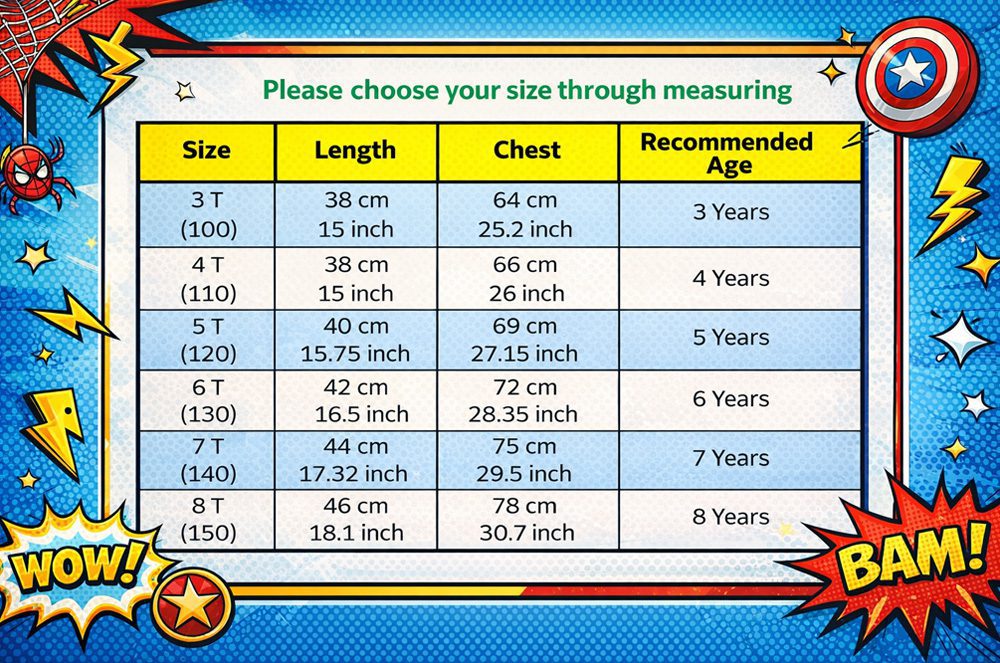 We purchased the Iron Man sweatshirt for my 5 years old birthday. My son is very thin and the 5T was way too small. We gave it to my son who wears 3T and it fits OK. I want to reorder in two sizes larger so that the son who loves Iron Man can wear the sweatshirt. The only other thing that I would share is that it comes with a very, very strong chemical ink smell. I had to wash it two times to get rid of the smell. the good news is, that the color was great and my kids like it.